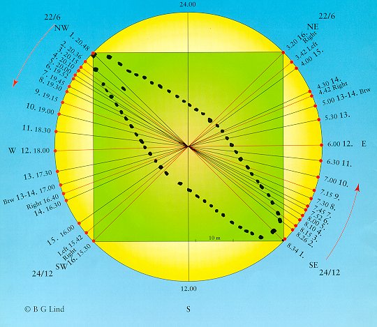 Drugi je kosmički kalendar. Posmatranje neba, projekcija kada je sunce najjače i najprisutnije, kada je energija naše Planete najjača (ljetni solsticij), su najvrijednije informacije za čitavu zajednicu. Slijedi proljetni i jesenji ekvinocij, doba agrikulturnih aktivnosti i primanja darova Majke Zemlje.