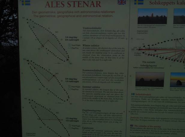 Na drugom panou je drugačije objašnjenje ovog monumenta. Detaljno je razrađena mogućnost da je Ales Stenar zapravo veliki kosmički kalendar koji je označavao dolazak ljetnog i zimskog solsticija, te proljetne i jesenje ravnodnevnice.  Pri tome je prisutnost sunčeve svjetlosti u megalitnoj ovalnoj površini bilo identično procentu trajanju dana (1/2, 1/4 ili 3/4) tokom različitih godišnjih doba.