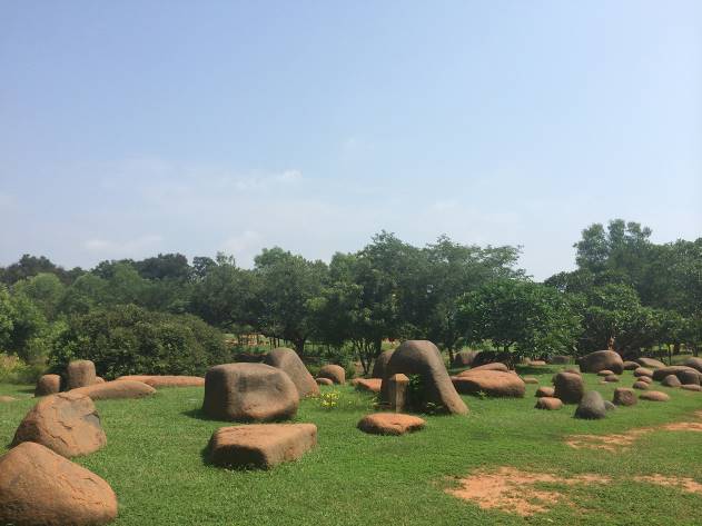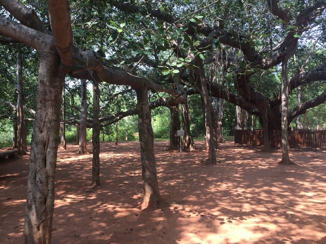 U parkovima s pokošenom travom se ističu stijene koje govore o povezanosti energije Zemlje i kamena. Zelenilom dominira sveto drveće: banjan (Ficus Bengelensis). U geografskom centru gradića, najveće, stoljetno drvo ima prečnik od 50 metara. Naime, banjan drveće ima osobinu da sa grana ispusti lijane koje ide prema zemlji; kada dođu do zemlje, ukopavaju se i stvaraju novi korijen. Odatle se razvija novo deblo. Centralno banjan drvo ima nekoliko desetina ovih dodatnih debala koji uspješno nose težinu drveta.