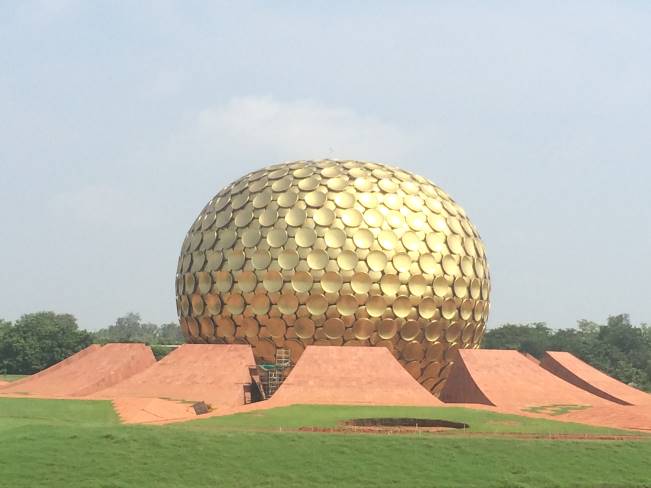 Centralna struktura Aurovillea je svakako zlatna kugla “Matrimandir”. Riječ je o ogromnoj građevini čiji su temelji postavljeni 1972. godine, nakon čega je Majka napustila fizičko tijelo. Izgradnja je trajala 35 godina. Imao sam sreću da sam posjetio završenu građevinu, onakvu kakva je bila zamišljena u glavama arhitekte i osnivača komune.