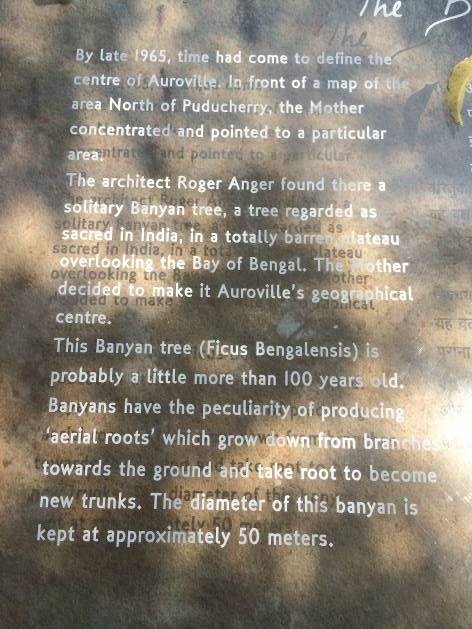 Na ulasku u Centar za posjetioce velika tabla s citatom osnivačice Aurovillea, “Majke”: