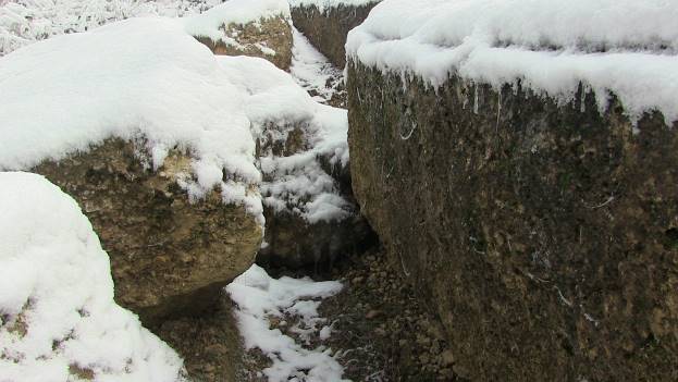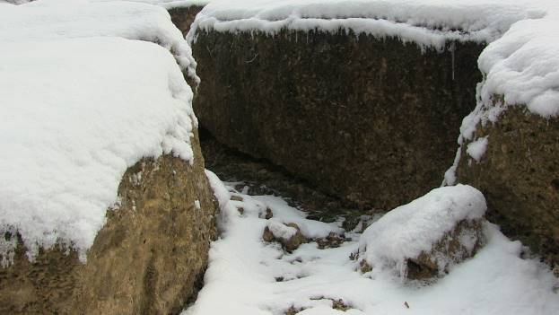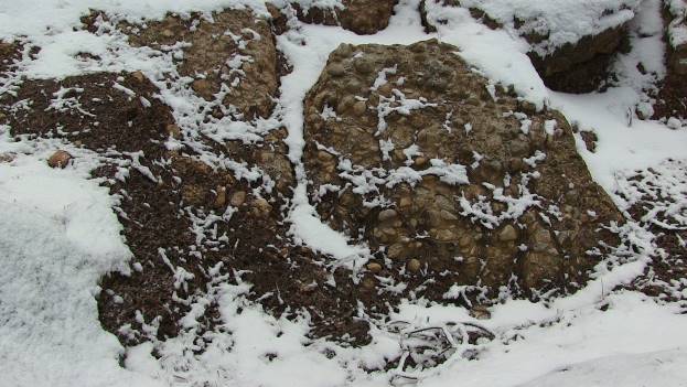 Bosanska piramida Sunca prekrivena je snijegom. Otvorene arheološke sonde, na kojima su vidljivi betonski blokovi, teško se mogu prepoznati pod nanosima snijega. Već devet godina, kiša, vjetar, snijeg ne ostavljaju nikakvu štetu na izuzetno čvrstim betonskim blokovima.