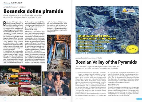 Magazin „Visit BiH“ u svom najnovijem izdanju za mjesec august/kolovoz 2024.godine donosi sjajnu priču iz Bosanske doline piramida na nekoliko stranica i u dvije verzije, na bosanskom i engleskom jeziku.