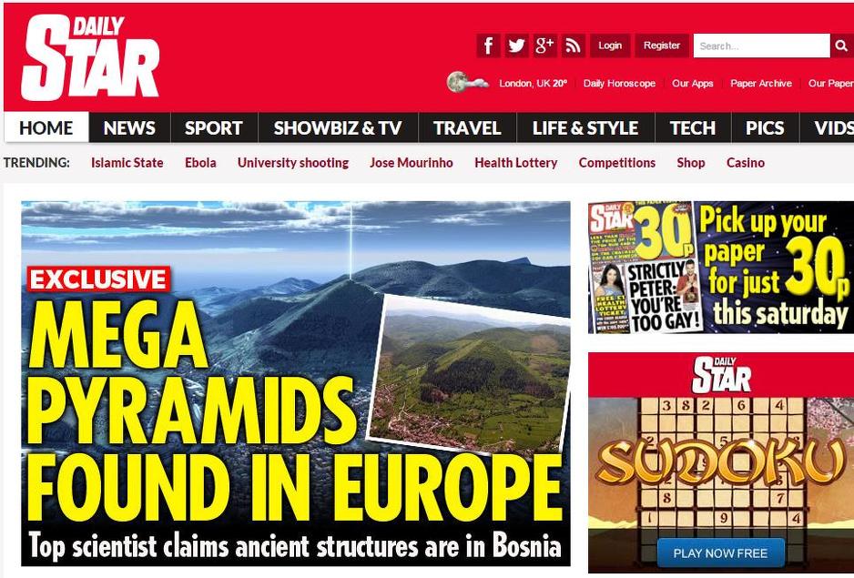 Bosanske piramide još uvijek su prava atrakcija stranim medijima. Nakon reportaže na Discovery Channelu, britanski Daily Star objavio je priču o bh. piramidama pod naslovom “Ekskluzivno: Dolina drevnih mega piramida otkrivena u Evropi”.