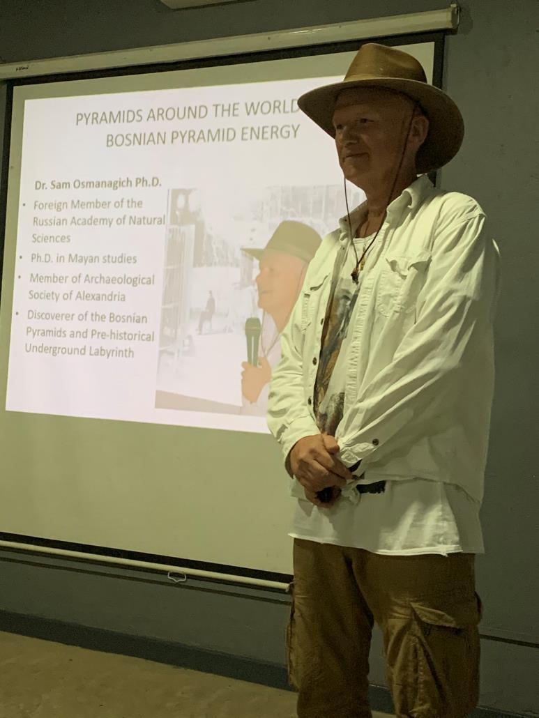 Tokom trosatne prezentacije Osmanagić je govorio o fenomenu piramida širom svijeta te vrlo iscrpno o hronologiji istraživanja u Visokom. Istakao je da je Fondacija ‘Arheološki park: Bosanska piramida Sunca’ ustanovila set naučnih kriterija za definiciju piramida.