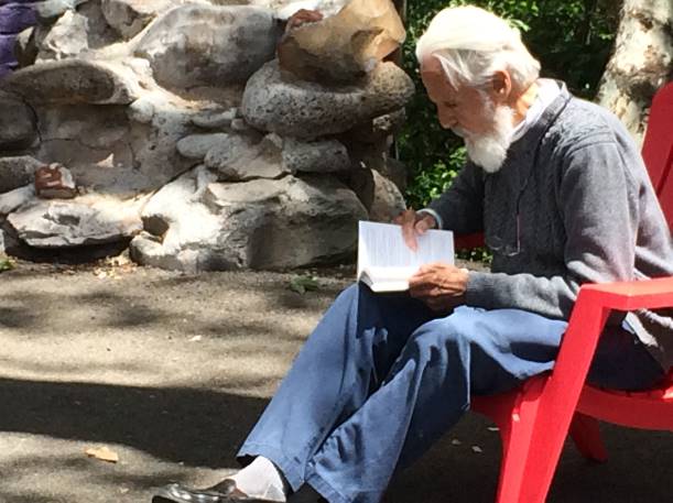 Kreće razgovor. U kratkim crtama upoznajemo se sa svojim životnim putanjama. Bio je u Los Angelesu, imao prodavnice duhovne literature. Pije tri litra vode na dan. Prije 40 godina su ga ljekari otpisali, davali mu samo mjesec dana života. Sam se izliječio biljkama. Otada živi u Sedoni, zadovoljan.