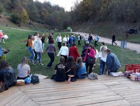 Park „Ravne 2“ je također bio prepun posjetilaca, ali ovaj put i pun pjesme i plesa, zašto su se pobrinuli članovi Kulturno – umjetničkog društva „Visoko“ koji organiziraju Sedmu smotru folklora, a prije nastupa odlučili su se i za posjet parku „Ravne 2“, gdje su se i zabavili.