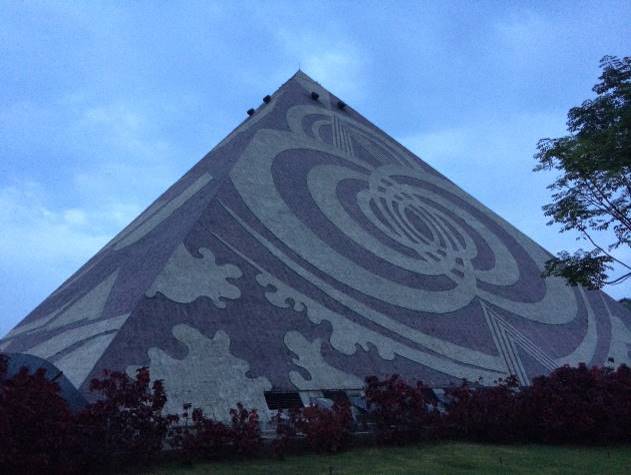 U prizemlju se nalazi prodavnica suvenira, naravno sve u znaku piramida. Sa strana su scene iz života Bude izlivene u metalu. Stepenice vode na prvi nivo gdje se odvijaju meditacije, ali i konferencije, izložbe i slicno. Svjetlo dolazi kroz otvore na ovom prvom nivou. Iznad njih su filteri kroz koje struji aklimatizirani, ohlađeni zrak. Ova ogromna prostorija je, s limitiranim svjetlom, gotovo u mraku. Za potrebe Kongresa na kome sam govorio, donesena je obimna oprema za svjetlo i zvuk.