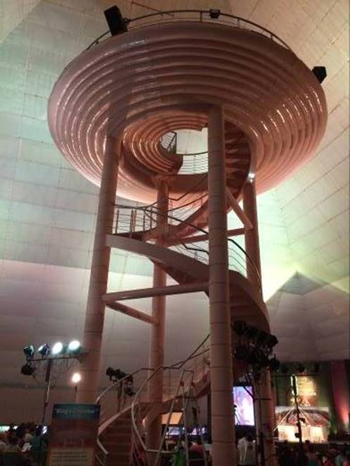 U centralnom dijelu piramide, spiralne metalne stepenice vode na veliku platformu gdje ima mjesta za meditaciju pedeset ljudi. Ispred stepenica znak: “Samo oni koji prethodno meditiraju 30 minuta mogu se popeti u Kraljevu komoru”. Ona se nalazi na jednoj trećini visine piramide. Dakle, na mjestu gdje je izložena uticaju kružnog kretanja energije piramide. Identično kao i kod Kraljičine komore u Keopsovoj piramidi.