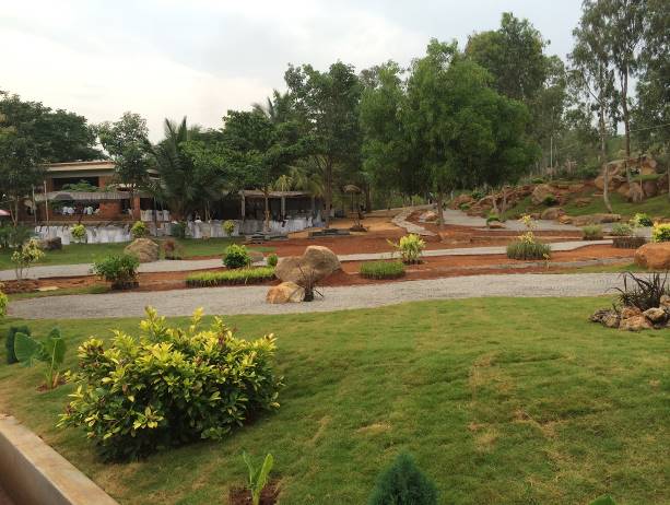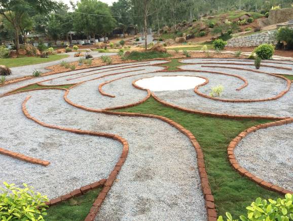 U kompleksu su kreirali jezero s malim otočićem u sredini. Tu su podigli statuu Gandija. Duž svih puteva i staza su fotografije mudraca iz prošlosti i njihove izreke vezane za duhovnost, prosvjetljenje, vegetarijanstvo, nenasilje. Preovladava nasmijano ili zamišljeno lice Patrijija s njegovim izrekama na engleskom i hindu jeziku.