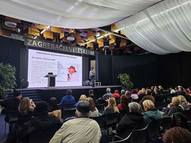 U Kongresnoj dvorani Zagrebačkog velesajma Dr Semir Osmanagić održao je u subotu 2. decembra 2023. godine predavanje pod nazivom ‘Energija bosanskih piramida’.