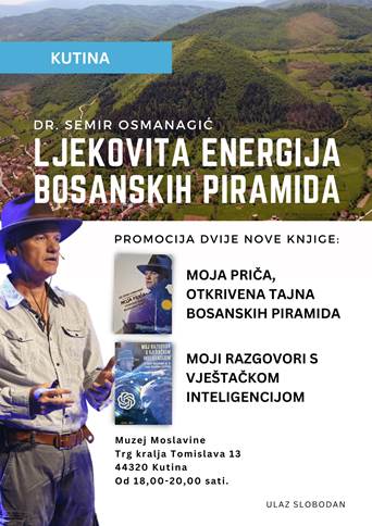 Ovom prilikom promovirati će i dvije nove knjige: ‘Moja priča – otkrivena tajna bosanskih piramida’ i ‘Moji razgovori s vještačkom intelgencijom – Dr Semir Osmanagić vs. AI’.