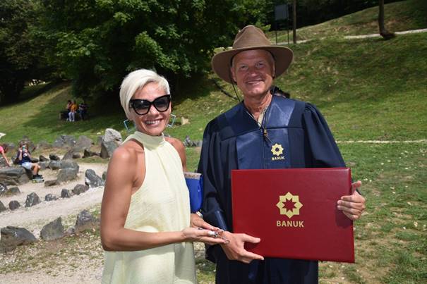 – Zahvaljujem na ukazanoj časti za izbor za počasnog člana akademije, koja mi je dodijeljena u jezgru Distrikta Ravne, u središtu naše Bosne. Mjesto na kojem se nalazimo je nekada bilo močvara, a mi smo dokazali da bez ijedne marke državne pomoći, snaga, ideja i vizija mogu da mijenjaju svijet. Često se žalimo na državu, a zapravo umjesto da se oslanjamo na državu, treba da razmišljamo kako mi možemo da mijenjamo sebe i svijet oko nas. Naša zemlja se nalazi u trenucima kada je suočena s brojnim izazovima, u vremenu smo kada umjesto tenzija trebamo raditi na saradnji, osobito sa našim komšijama, jer je budućnost našeg regiona u saradnji, miru i prijateljstvu. Ovaj park je dokaz nediskriminacije, dolaze nam ljudi iz svih krajeva svijeta i cijelog regiona, dokaz smo da ljudi dolaze rado, odlaze vedri i nasmijani i ponosni što ovakva lokacija postoji u svijetu. Želio bih da se Akademija u budućnosti odlikuje konkretnim rješenjima, ali i rješenjima koju su na putu saradnje o kojoj govorim. Želio bih da ova naša akademija, ali i sve ostale akademije koje imamo, rade na projektima kojima ćemo unaprijediti standard naših ljudi, kako da ih dovedemo u stanje, da umjesto što razmišljaju o goloj egzistenciji, da razmišljaju da li su ovaj dan proveli sretno. To je svrha života, da smo ispunjeni, zadovoljni, da vibriramo najvišim vibracijama ljubavi, a ne nasilja, ljubomore, zavisti i mržnje. – poručio je dr. Osmanagić još jednom se zahvalivši na časti koja mu je ukazana i prijemu u Bosansku akademiju nauka i umjetnosti „Kulin ban“.