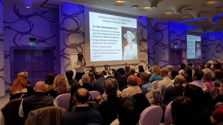 Toplo pozdravljen, dr. Semir Osmanagić je održao prezentaciju o otkriću i hronologiji projekta bosanskih piramida. Nadanuto i iscrpno je govorio o arheološkom i interdisciplinarnom naučnom aspektu piramida u Visokom, o energetskim fenomenima, uticaju na duhovnost i ljudsko zdravlje. Projekt je predstavljen kao najotvoreniji arheološki projekt u svijetu koji je, samo u posljednjih osam godina, privukao 2.900 volontera iz 62 zemlje svijeta, sa šest kontinenata.
