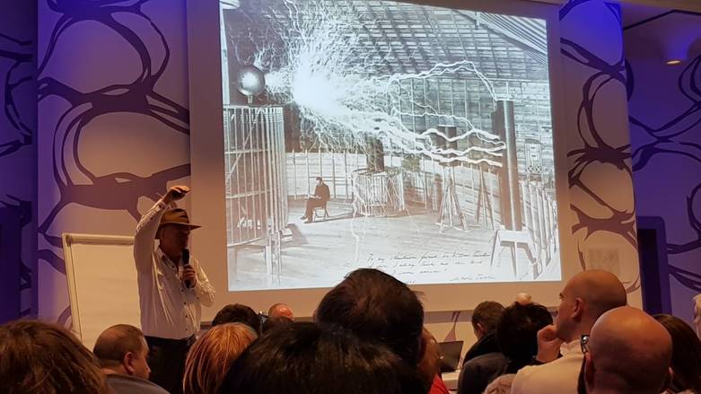 Više puta prekidan burnim aplauzom prisutnih, Osmanagić je govorio o energiji piramida kao čistoj i besplatnoj energiji povlačeći paralelu s radom Nikole Tesle, o slobodnom protoku znanja, o otvorenosti u nauci, o balansu fizičkog i duhovnog te životu u harmoniji s prirodom. Uputio je poziv svima za posjet bosanskim piramidama i Visokom.