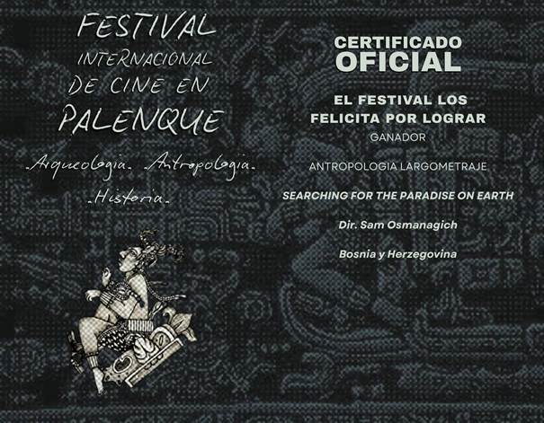 Film dr. Semira Osmanagića, „Potraga za rajem na zemlji“, koji govori o njegovoj potrazi za lokacijom na kojoj je živjelosumersko božanstvo Enki pobjednik je još jednog filmskog festivala. Nagrada ovoga puta stiže iz Meksika, sa „Palenque Film Festivala“ koji se održava u Palenqueu.