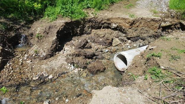 Prošlonedjeljne jake kiše i poplave koje su ih pratile dovele su do potpunog uništavanja zemljanog mosta na općinskom makadamskom putu izetište Ravne – selo Dubrave.
