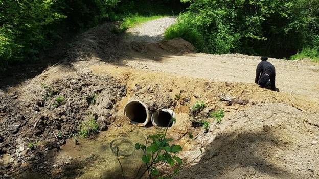 Međutim, poplave početkom juna su uništile zemljani most i razbacale betonske cijevi. I ovaj put je Fondacija brzo reagovala. Već slijedeći dan, Fondacija je kupila dodatne betoske cijevi, angažovala bager i kamion, postavila dva reda propusnih cijevi i ponovo napravila zemljani most.