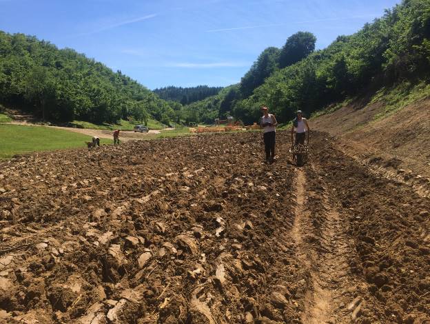 U protekle tri sedmice, radnici i saradnici Fondacije su pristupili uređenju zapuštene šikare. Desetine panjeva te korovi i grmlje su uklonjeni. Parcele su izravnane, uređeno je korito postojećih potoka. Dva bagera, traktor, kamion, motorne pile i drugi alati su korišteni, a radilo se i po kiši i po suncu. Korijeni i grane su izvađeni, kamenice sklonjene u potok. Zemljište je obrađeno, preorano, izravnano, posađeni su trava i ječam.