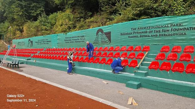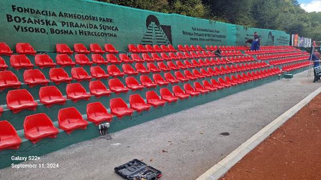 Drvene štafle su izdržale tri sezone (2022.-2024.). Međutim, izloženost različitim vremenskim uslovima (sunčano pa hladno vrijeme, kiša, vjetar, sunce) dovelo je do pucanja klupa. Obzirom da Fondacija ‘Arheološki park: Bosanska piramida Sunca’ sa svojim privrednim društvom ‘Bosanske piramide d.o.o.’ insistiraju na poštovanju najviših standarda u parku i na svim arheološkim lokacijama bilo je logično da se nađe bolje rješenje.
