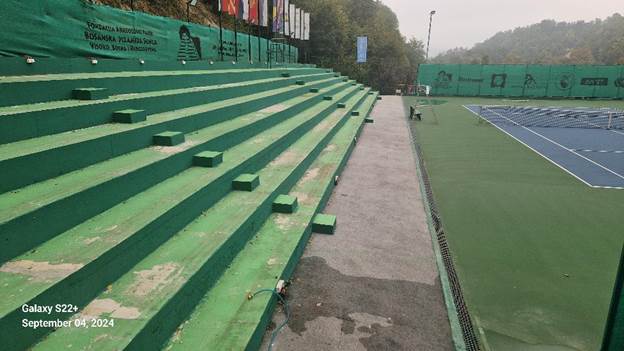 Najljepši evropski park postao je bogatiji za još jednu novost. Naime, tokom avgusta i septembra 2024. postojeće drvene klupe na zapadnim tribinama oba teniska terena zamjenjene su plastičnim stolicama sa naslonom.