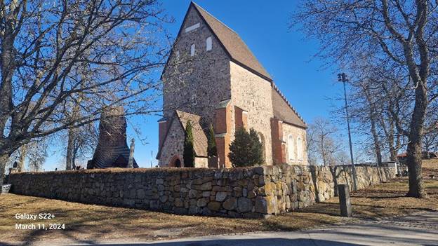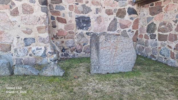 Na arheološko-muzejsko-crkvenoj lokaciji Gamla Uppsale, dominira kamena crkva. U njenim zidovima su (nekada) bili ugrađeni blokovi s runskim pismom, te blokovi koji su pripadali nepoznatoj utvrdi. To je bilo uobičajeno za srednjevjekovnu crkvenu rutinu. Pronašli bi lokaciju značajnu za lokalnu tradiciju, uništili njihove spomenike (hramove, megalitne strutkure) i tim materijalom sagradili crkvu i prateće objekte. U zidu oko crkve upotrijebljeno je hiljade tona kamena, različitih dimenzija i razliite vrste. Uočljiv je granit.