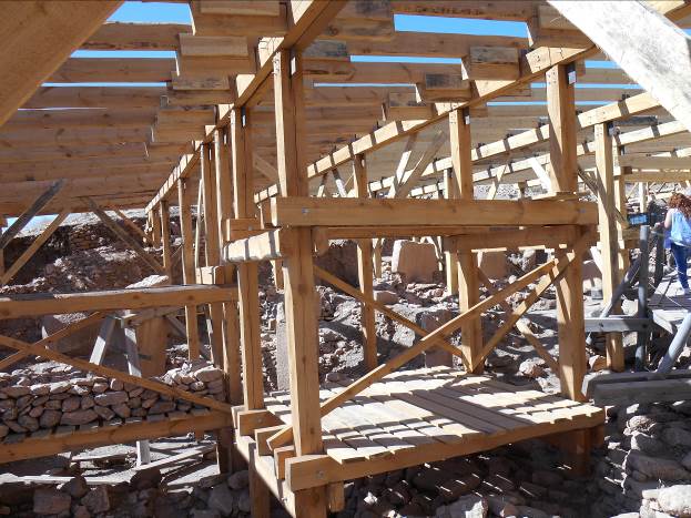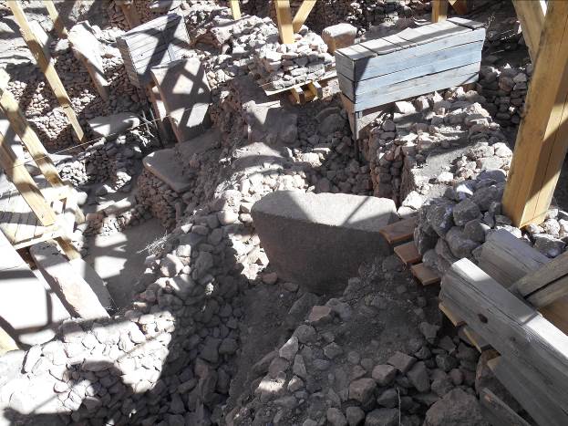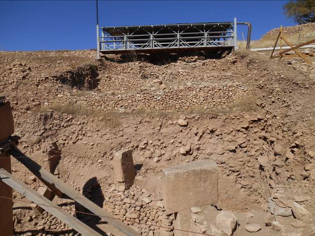 – Kompletna lokacija je “u žurbi” (prema Schmidtu) zatrpana kombinacijom zdrobljenog kamena (krečnjaka), životinjskih i ljudskih kostiju prije 8.100 godina. Nanosi ovog materijala dostižu danas visinu od 15 metara.