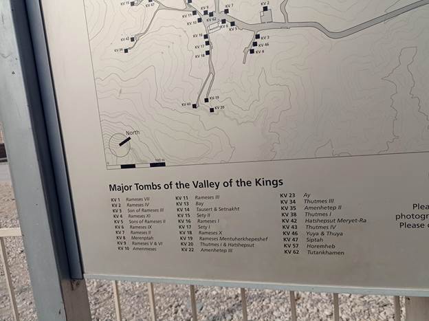 Danas su obilazili lokacije na zapadnoj obali Nila. Mjesto gdje su faraoni sahranjivani zove se Dolina kraljeva. U Dolini kraljeva do sada su pronađene 62 grobnice, a grupa je obišla/ušla u 3 grobnice: Ramzesa IV, Merenptahta i Ramzesa IX.