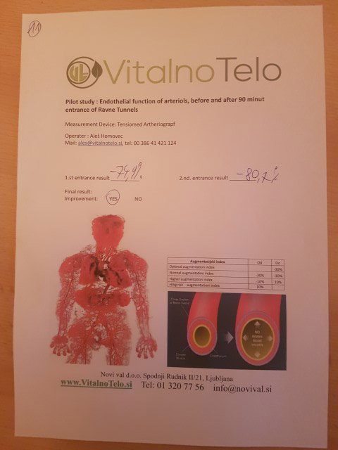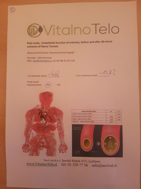 Zaključuje da boravak u tunelima Ravne uslovljava opuštanje krvnih sudova, a samim tim i snižavanje krvnog tlaka.