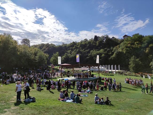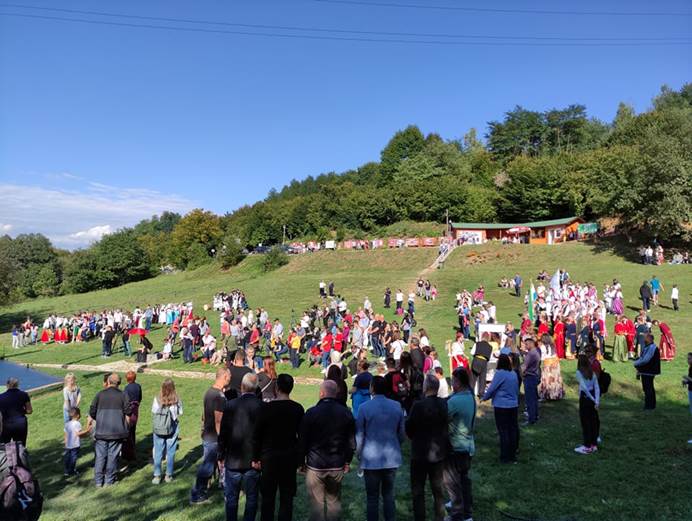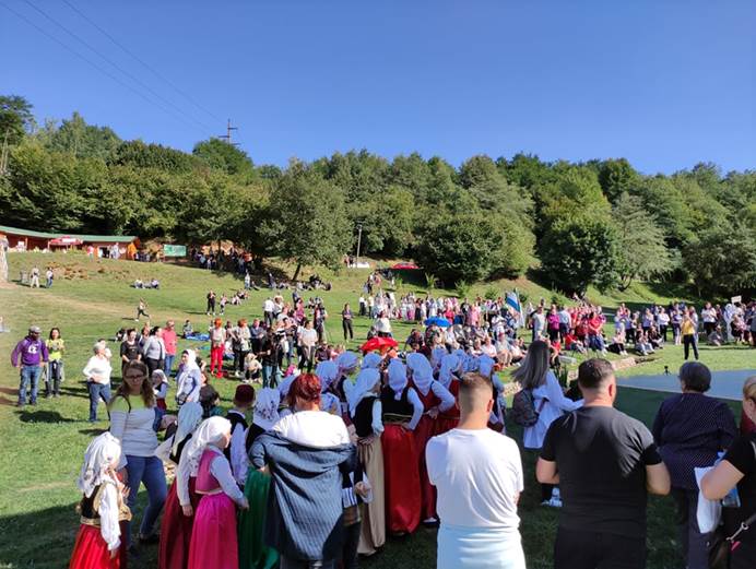 Nakon obraćanja i otvorenja smotre publici, koje je bilo u zaista velikom broju, i koja je imala priliku da uživa u predivnom jesenjem popodnevu u parku “Ravne 2”, predstavila su se kulturno-umjetnička društva iz naše zemlje i Crne Gore, te pobrala simpatije prisutnih, ali i rasplesala i oraspoložila sve prisutne.