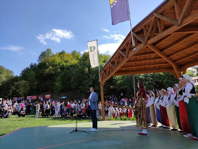 Internacionalna smotra folklora Visoko 2021. održana je danas u parku “Ravne 2”. Organizator ovog interesantnog događaja bilo je Kulturno – umjetničko društvo Visoko, a osim društava iz naše zemlje, događaj su upotpunili i gosti iz Podgorice. U svom obraćanju predsjednik KUD “Visoko” Nihad Dervišević se zahvalio na pomoći u organizaciji Fondaciji “Arheološki park: Bosanska piramida Sunca”, te gradonačelniku Visokog Mirzi Ganiću i Gradskoj upravi, a prisutne je pozdravila i programska direktorica parka “Ravne 2” Azra Ohran Zubić. Manifestaciju je svečano otvorio gradonačelnik Visokog Mirza Ganić, koji je istaknuo kako je u posljednje vrijeme u Visokom sve više interesantnih događaja, kao i kulturnih događaja, što mu pričinjava posebno zadovoljstvo.