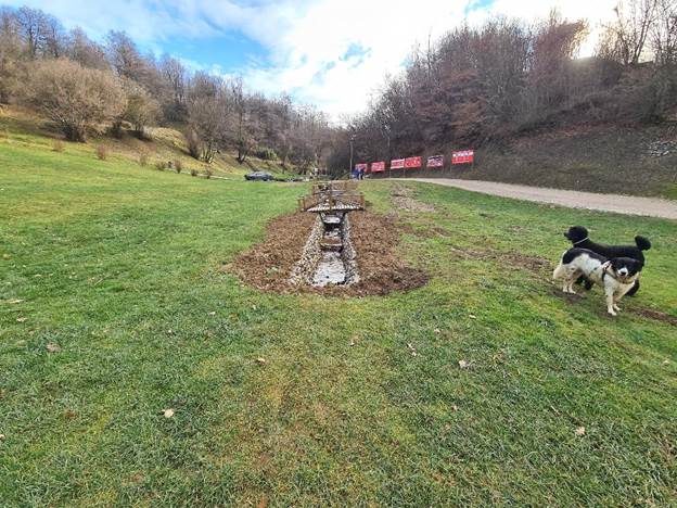 Nakon što bager proširi i produbi korita potoka, postavlja se armaturna mreža i beton s obje strane potoka, u kojeg se ugrađuju kamene oblice koje se dobijaju tokom čišćenja tunela Ravne, Ravne 3, Ravne 4 i Ravne 5. Na taj način se energija tunela prenosi i u park. U mnogim oblicama se nalaze i minerali kvarcnog kristala. U korita potoka se postavljaju i kaskade koje utiču na kontrolu vodotoka ne dozvoljavajući brzi bujični tok.