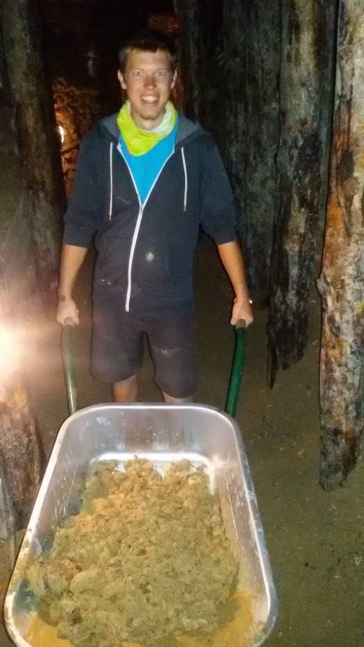 U tunelima su volonteri asistirali našim stalnim radnicima Edi i Ministru na čišćenju novih prolaza na cca 250 metara od ulaza. I ovdje je korišten „lanac“ ali ovaj put umjesto kanti razmjenjivali smo puna/prazna kolica. Zahvaljujući efikasnosti i funkcionalnosti ovakvog načina rada uspjeli smo pomoći pri širenju tunela za 5-6 metara u samo par dana rada. Pored toga očistili smo postojeće drvene podgrade i obavještajne table od nataložene prašine i gljivica.