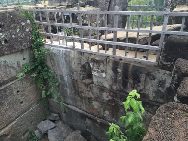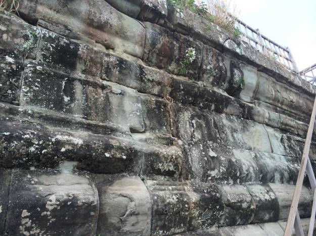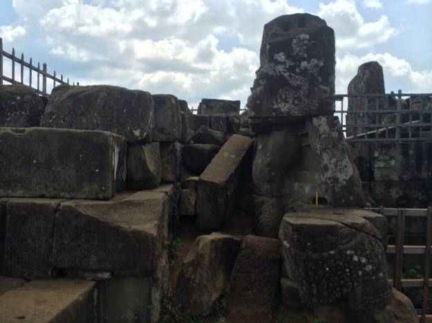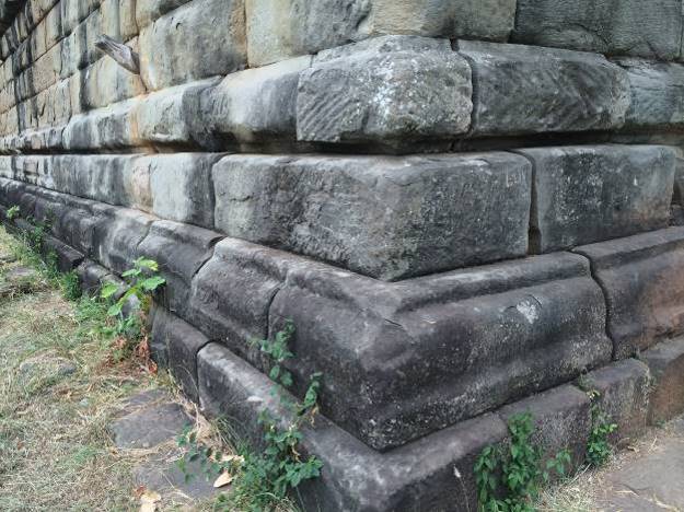 Blokovi u prvih šest redova imaju masu između 500 kg. i 2.000 kg. Najveći blokovi nalaze se na samom vrhu i dostižu sedam tona. Četvrtasti okvir kojeg obrazuju blokovi na vrhu ukrašen je sa vanjske strane hindu motivima. Bogovi drže, ne Zemlju, već nebo na svojim rukama.
