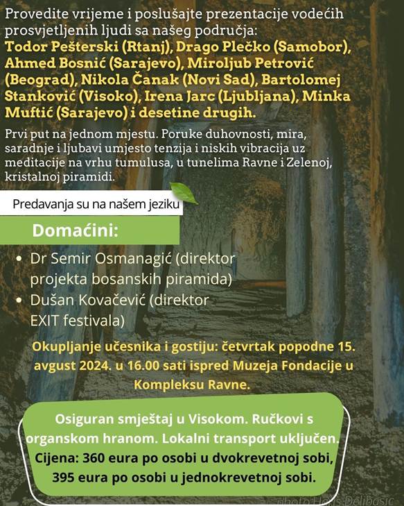 Poruke duhovnosti, mira, saradnje i ljubavi umjesto tenzija i niskih vibracija uz meditacije na vrhu tumulusa, u tunelima Ravne i Zelenoj, kristalnoj piramidi.