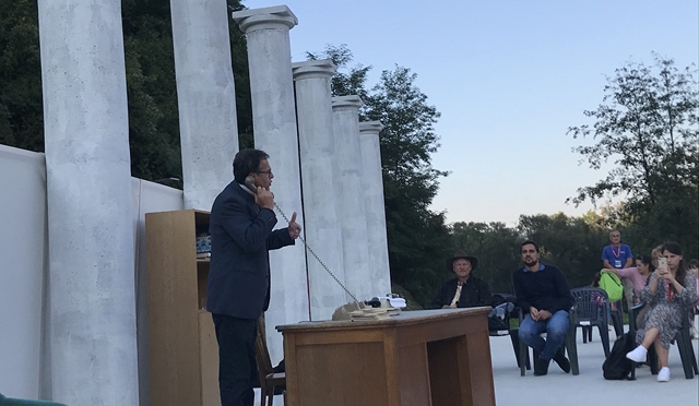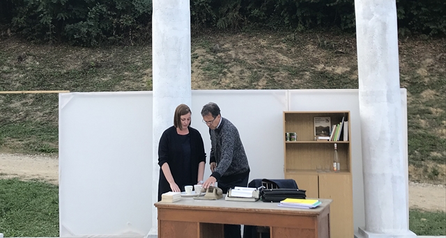 Park „Ravne 2“ iz vikenda u vikend, ali i iz dana u dan postaje svojevrsna kulturna oaza Visokog, ali i ovog dijela naše zemlje, a ove nedjelje, 20.septembra 2020.godine, u parku, u novoj instalaciji „Vremeplov“ koja je potpuno opravdala svoju namjenu, odigrana je teatarska predstava „Profesionalac“.
