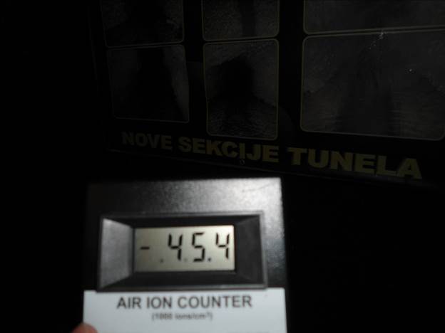 - Mjerenje na 40 metara od ulaza unutar tunelskog prolaza: 5.790 –ons/cc, što je dvostruko više u odnosu na zimsko mjerenje od 3.000 –ons/cc.