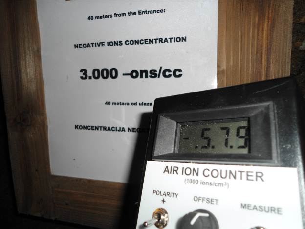 - Najviša zabilježena vrijednost negativnih iona u podzemnim tunelima je izmjerena u trećoj prostoriji, prije raskršća sa tunelima sa vodenim akumulacijama, 340 metara od ulaza: 45.400 negativnih iona po kubnom centimetru. Komparacije radi, na Igrmanu u borovoj šumi, što se smatra najzdravijom lokacijom u Srednjoj Bosni, koncentracija negativnih iona je oko 5.000 –ons/cc.