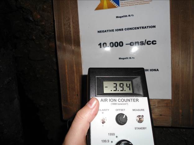 - Mjerenja kod “Megalita K-1”: 39.400 –ons/cc (druga skala). Referentno mjerenje u decembru 2012.: 10.000 –ons/cc