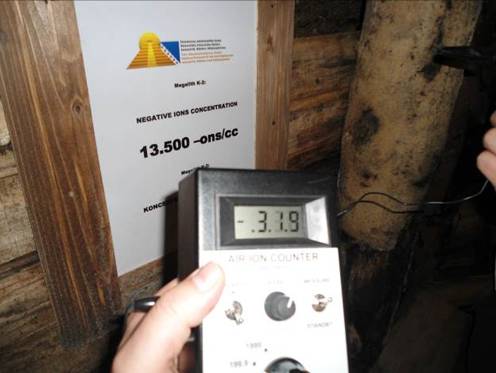 - Mjerenje u ljekovitoj komori: 42.500 –ons/cc, takođe više vrijednosti nego u decembru 2012. kada je zabilježena koncentracija od 18.400 –ons/cc
