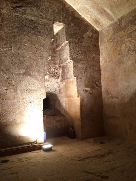 Odlazimo u odaju ispod, tzv. “Kraljičinu komoru”. Sramno je kako su egiptolozi izgradili priču o kraljevima, faranoima, grobnicama, bez ijednog dokaza. Prazna je, “nedovršena”. Naravno, riječ je o rezonantnoj komori. Na dva zida probušene rupe kroz koje su Egipćani slali malog robota da pronađe evenutalno druge prostorije i možda i mumiju. Naravno, bezuspješni pokušaji dr. Zahi Hawassa.
