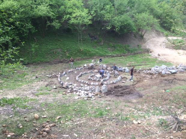 Za postavljanje megalitnih krugova korištena je sekcija parka koju je odredila britanska arheologinja Sue Jones kao energetski najpotentniju. Gerald je odredio središnju tačku.