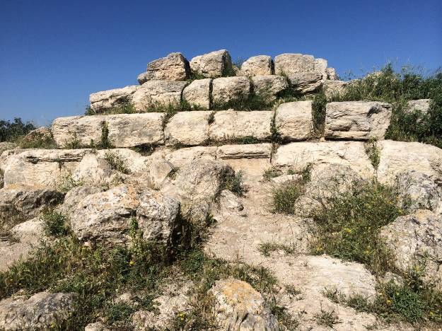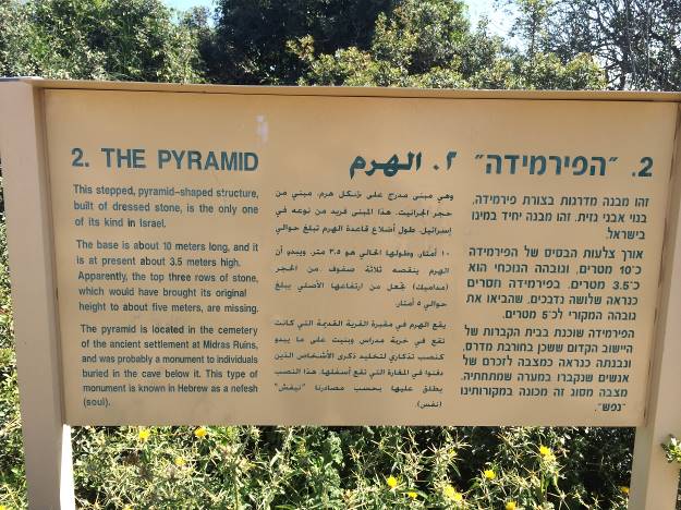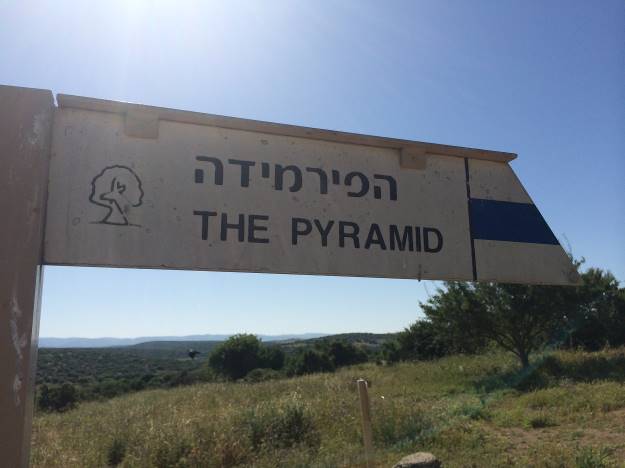 “Midras ruševine” je uzvišenje prepuno pećina, ali naš cilj je sami vrh brda. Znak na hebrejskom i engleskom me je već pripremio: krećem se prema jedinoj piramidi u Izraelu.