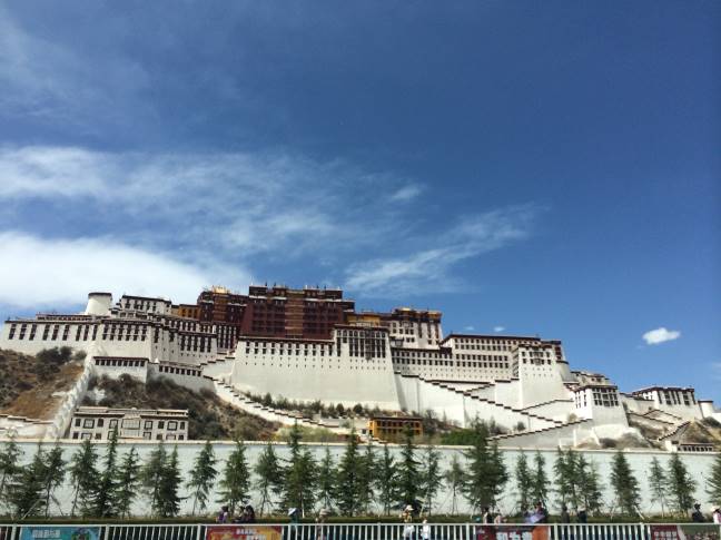 Napokon, u glavnoj ulici, pogled prema imperijalnoj palati Dalaj Lame i budističkim hramovima. Impresivni zidovi, visoki desetak metara, ograđeni posjed, prozori visoko na zgradama. Danas je ovaj, nekadašnji svjetski centar budizma, okružen žičanom ogradom, pretvoren u neku vrst muzeja, izgubivši svoju spiritualnu, edukativnu i energetsku ulogu.