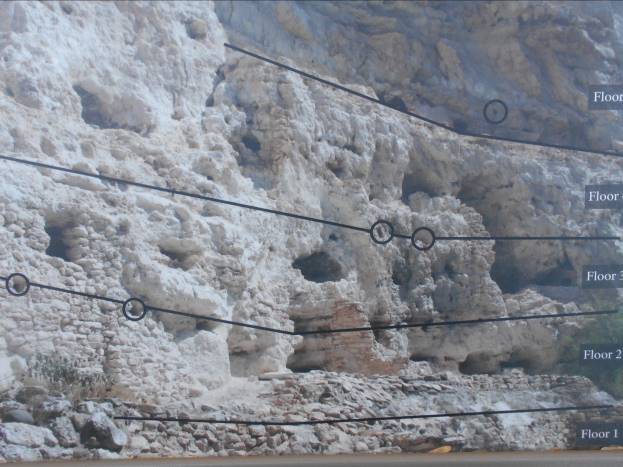 Uprkos teškoj dostupnosti i lakoj branjivosti, arhitektonski stil ovog naselja ne odstupa od drugih naselja ove kulture. Rijetki i uski prozori, bez vrata. Ulaz je uvijek s krova. Za kretanje između pet spratova su bile potrebne ljestve.