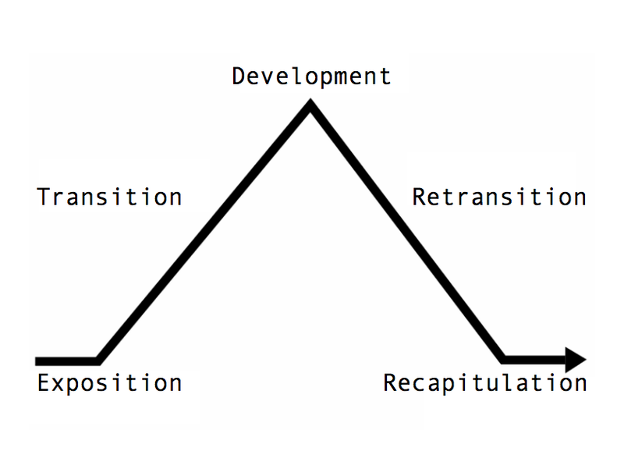 Čajkovski je kreirao formu sonate kao piramidu koja se sastoji od tri osnovna dijela: predstavljanja, razvoja i rekapitulacije. U fazama između je zidao blokove u kojima je predstavljao različite teme, često i suprotstavljene, ali povezane glavnom muzičkom temom.