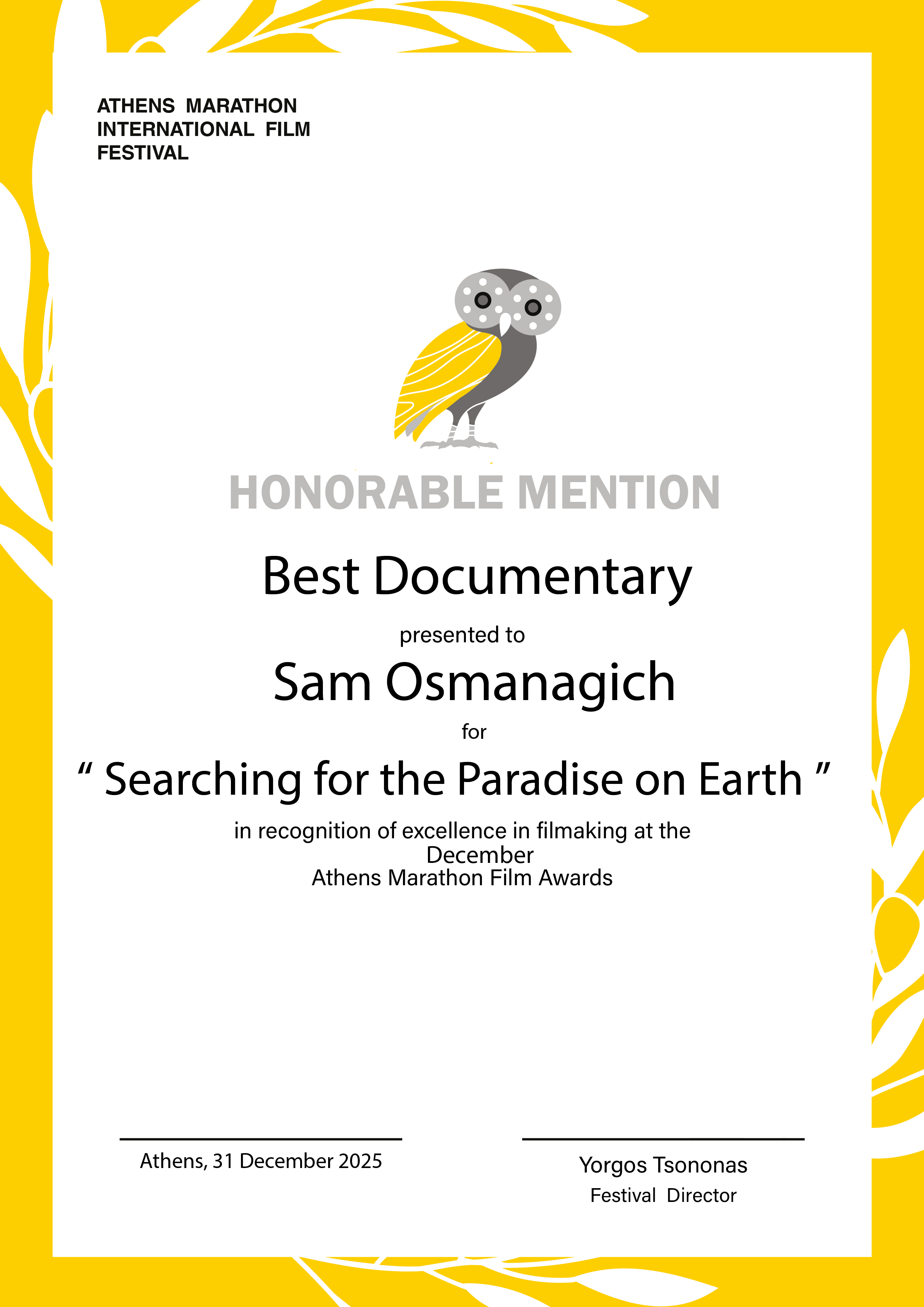 Dokumentarni film dr. Semira Osmanagića “Searching for the Paradise on Earth” osvojio je počasnu nagradu za dokumentarni film na decembarskom izdanju Athens Marathon Film Awards, čime je njegov autorski rad dobio još jedno značajno međunarodno priznanje.