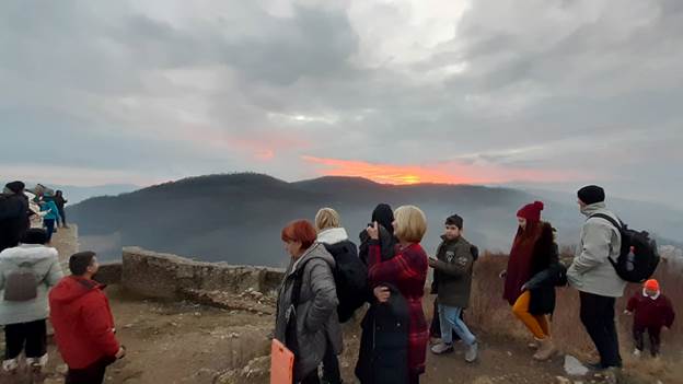 Nakon tunela uslijedio je najinteresantniji dio programa. Uspon na sami vrh Bosanske piramide Sunca i posmatranje astronomskih događaja. Grupa od 20ak entuzijastičnih posjetilaca, koji su za ovu priliku doputovali iz Sarajeva, Zenice, Srebrenika, Doboja, Cazina, Kiseljaka ali i Beograda, Splita, Skopja i Kotora, posmatrala je prvo zalazak Sunca,a onda i čekala veliki događaj na jugozapadu.