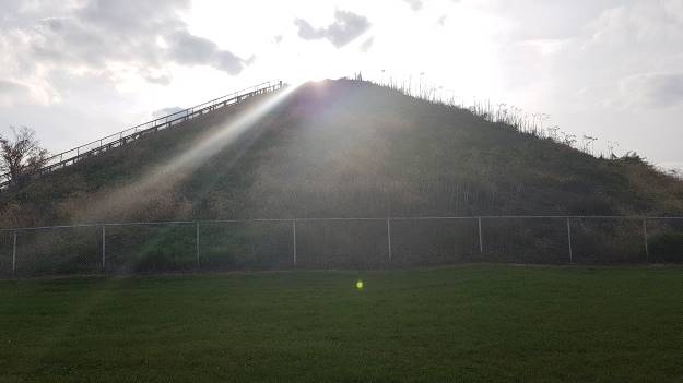 Ušao sam u gradić Miamisburg u Ohaju. Iz ravnice mi odmah upada u oči vrh konusnog uzvišenja. Nije mi potrebna navigacija nekoliko posljednjih kilometara vožnje. Parkiram kao jedini auto na parkingu.