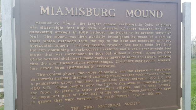 U lijepo održavanom parku, ogromni tumulus plijeni svojom visinom i geometrijskom pravilnošću: Miamisburg Mound! U njega je ugrađeno 50.000 kubika zemlje i građevinskog materijala. Obim mu je 270 metara, a visina 20 metara. Ovo je jedan od dva najveća tumulusa na istoku SAD, upisan u Nacionalnu listu hitorijskih mjesta.